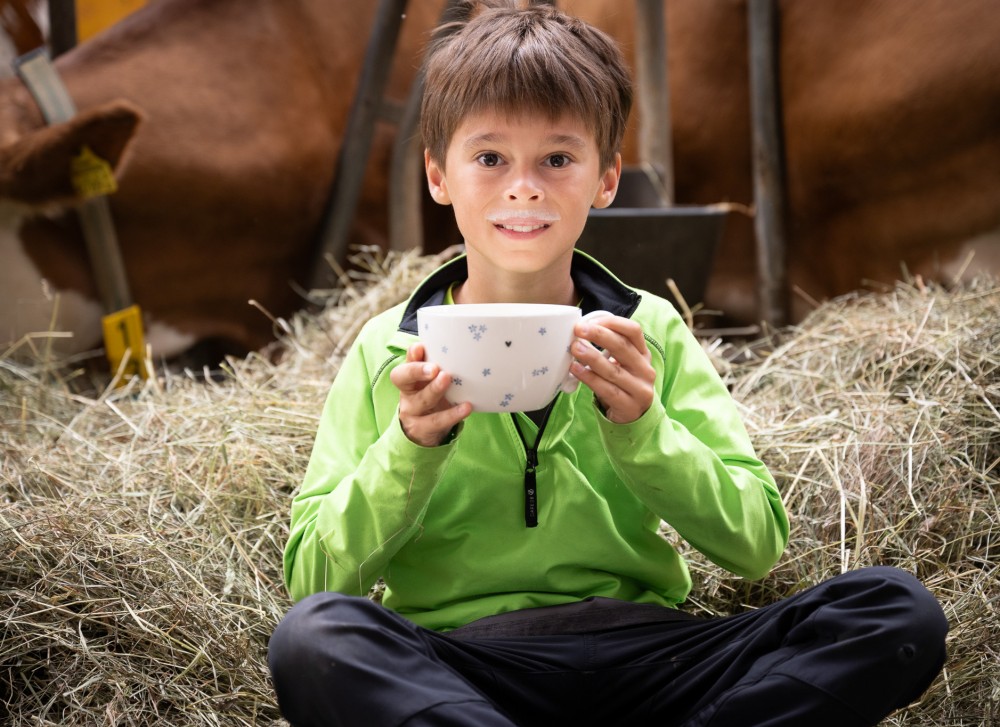 6:30...der Bauer begrüßt seine besten Mitarbeterinnen im Stall, streicht ihnen übers Fell und führt seine "Damen" zum Melken. Ich hole die Milch mit meinen Kindern, auch du kannst mit dabei sein::) gemeinsam füllen wir die Milch in eure Glasfläschchen und Milchkännchen.